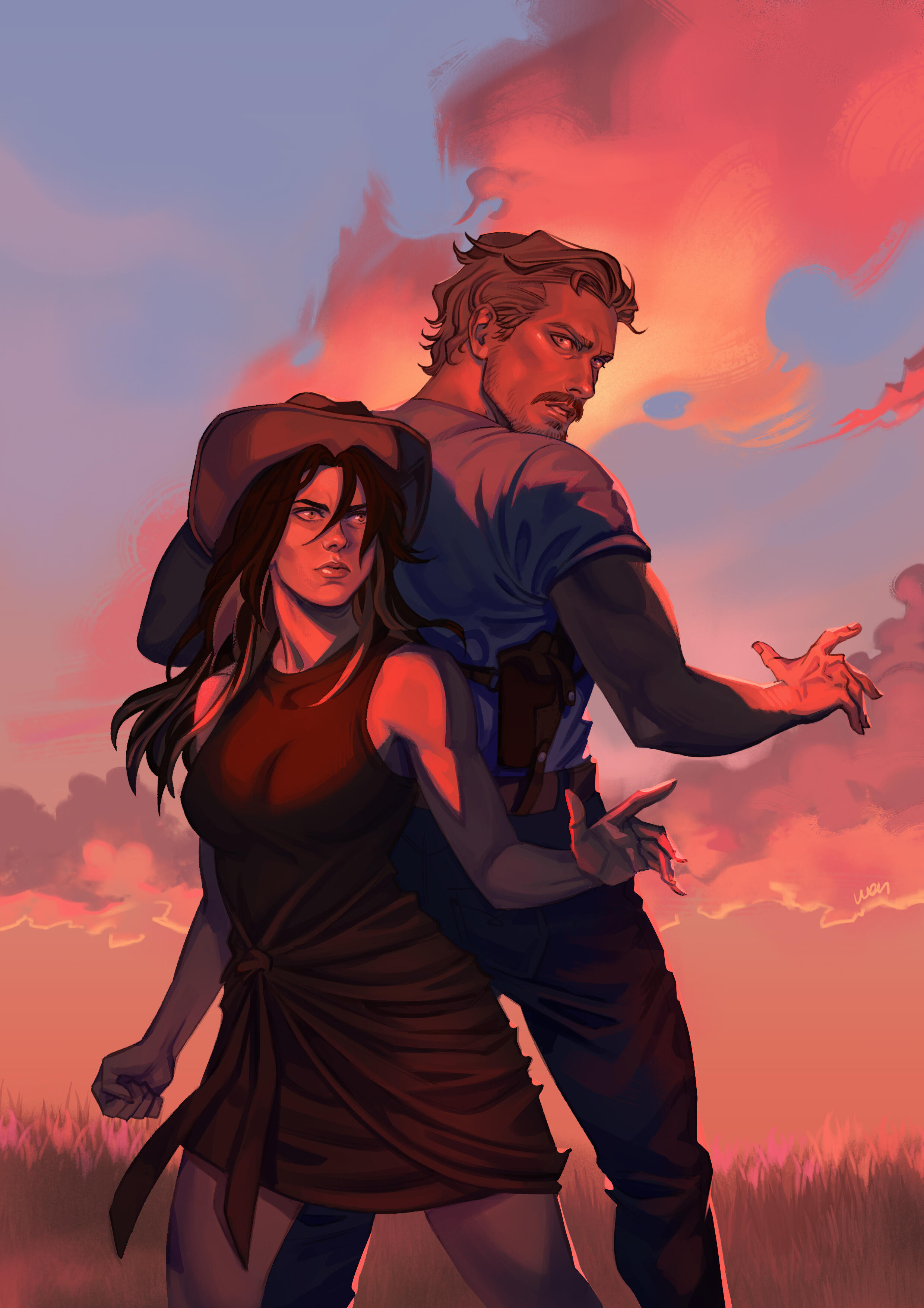 A cover for your books, posters, or game art. Two characters, a fast background, commercial use 'indie', and a preview of the sketch with up to 3 changes are included. I will provide a PSD file with masked characters if required.